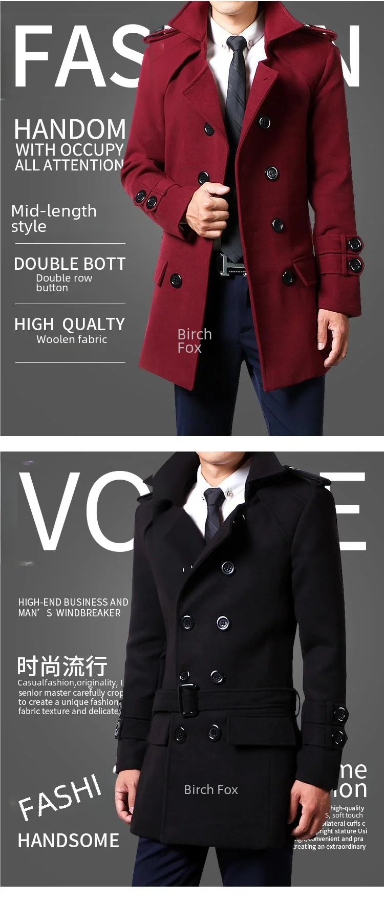 Be the first to review “Winter Woolen Overcoat Men Medium-length Fleece-lined”