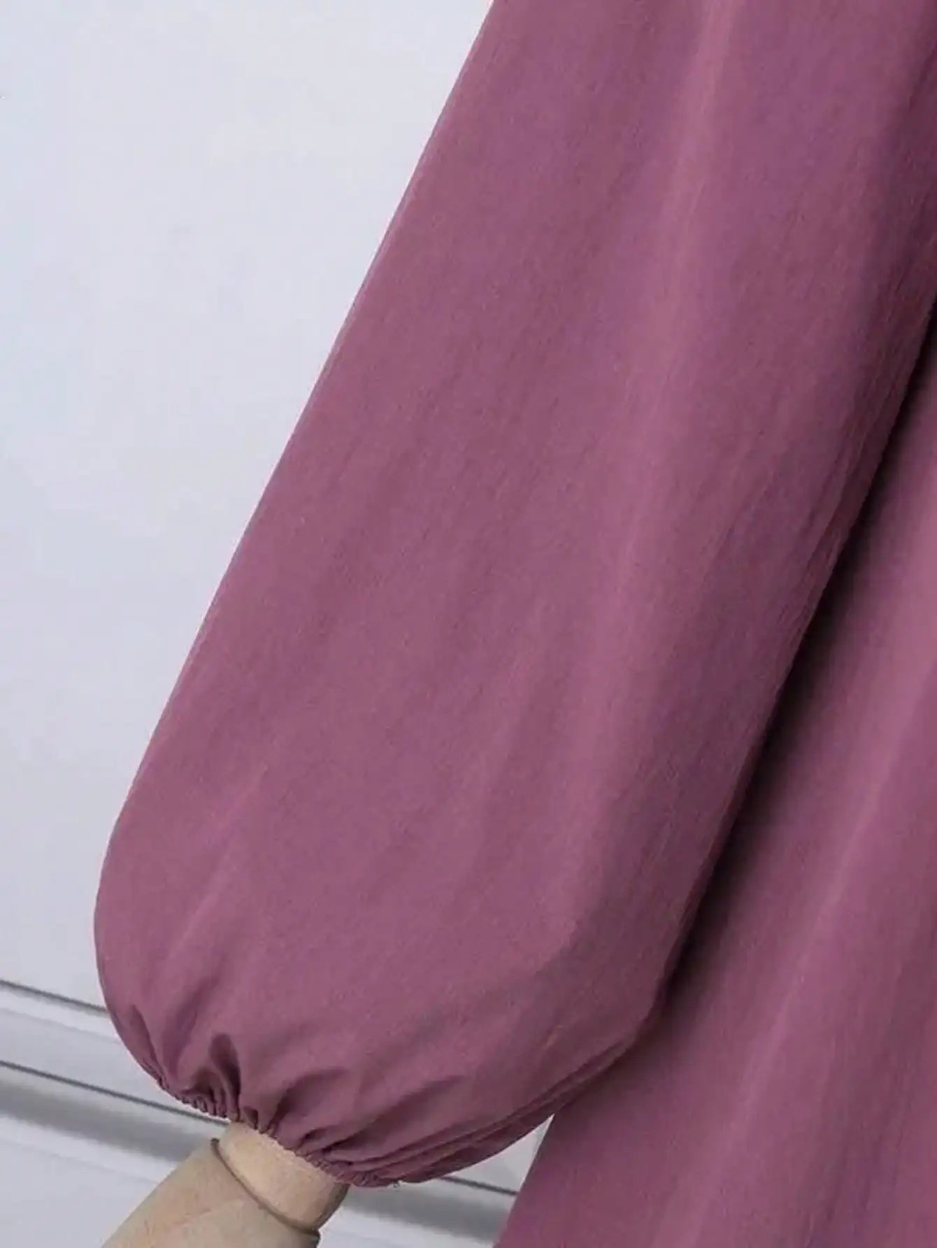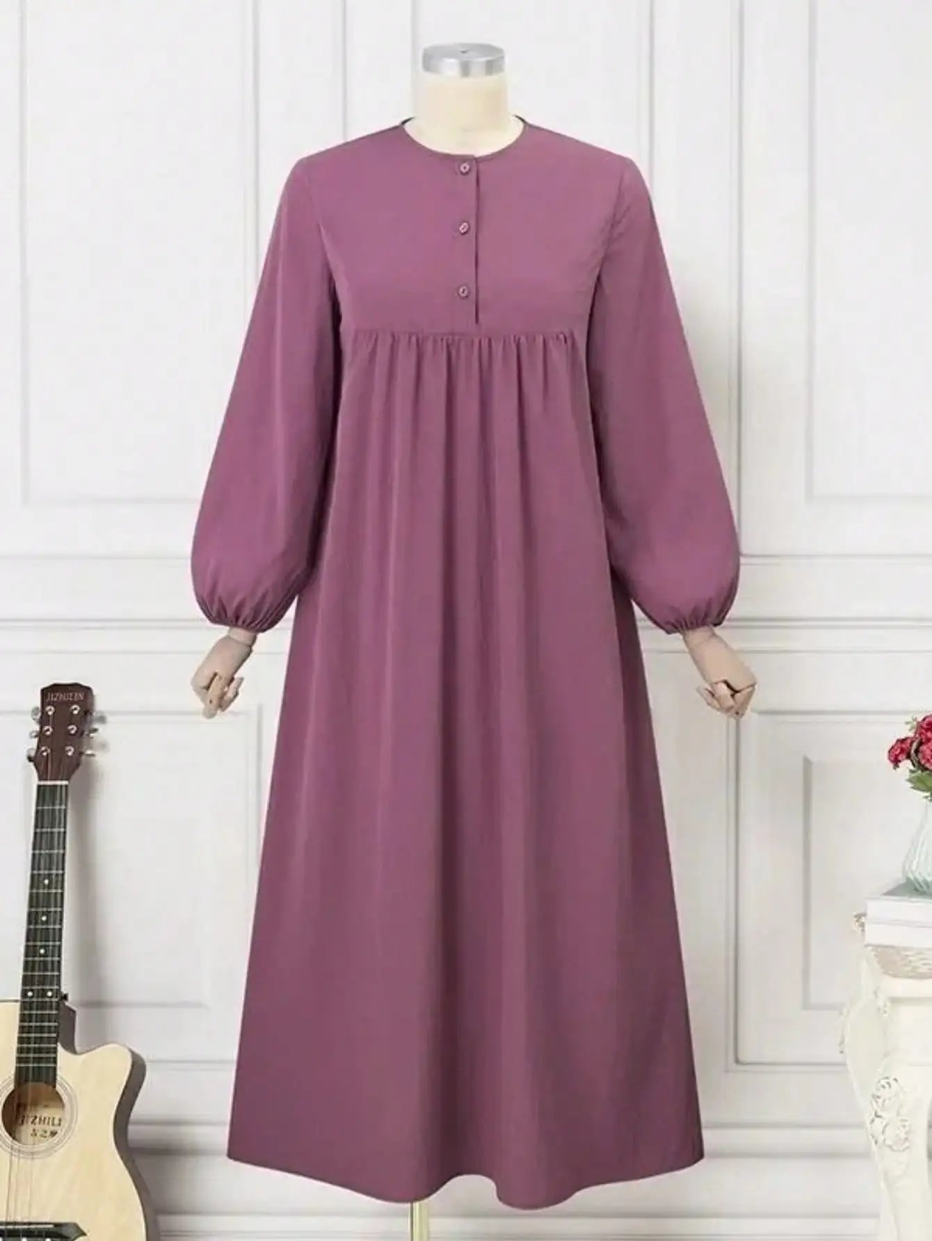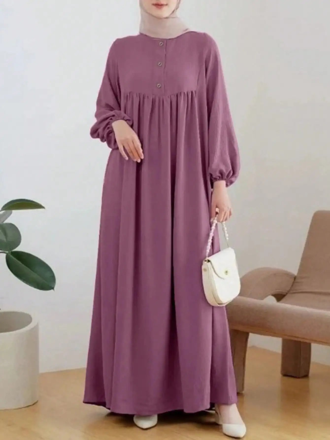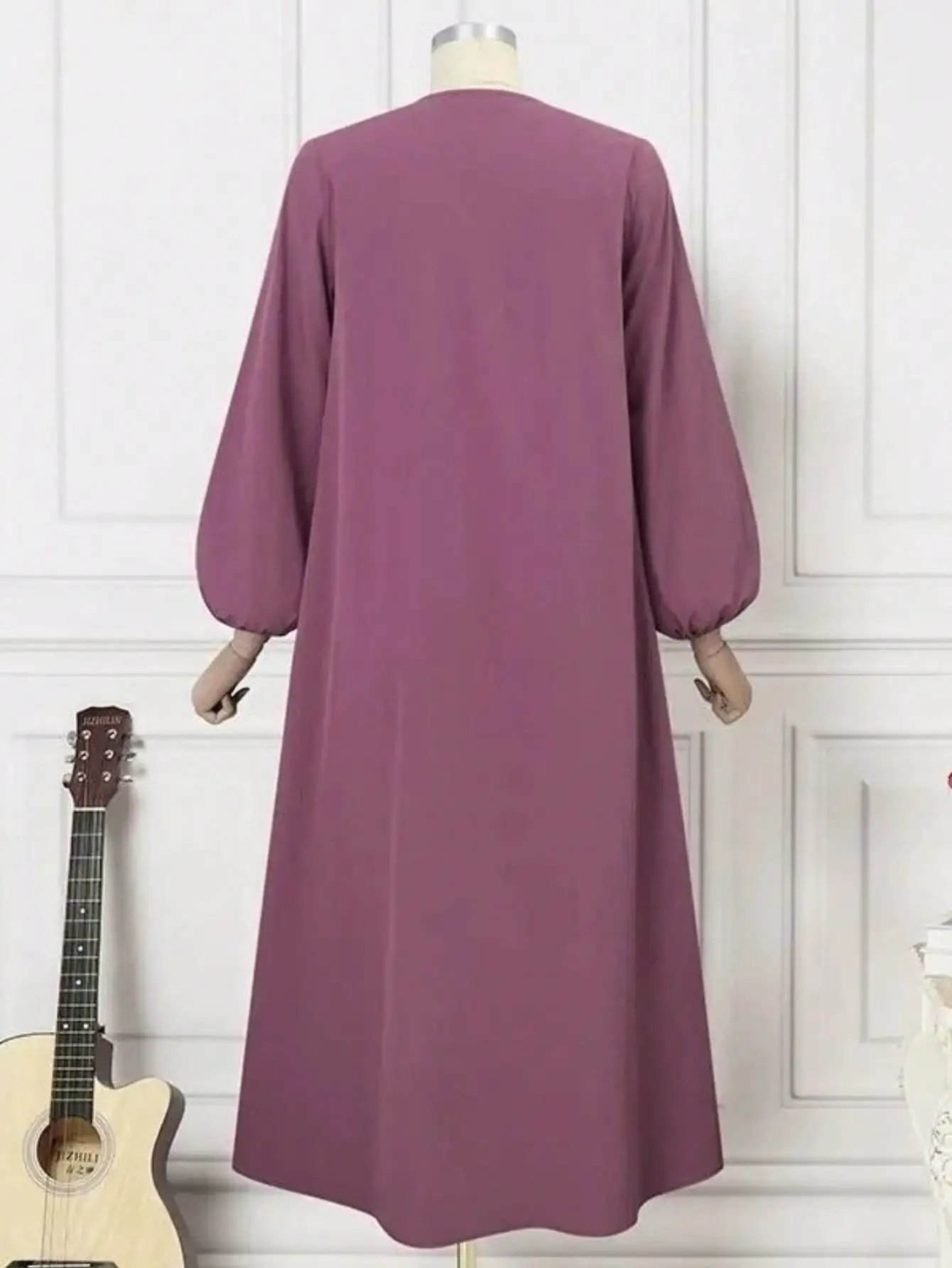 Women Muslim Maxi Dress Fashion Casual Long Sleeve Robe Round Neck Solid Color Casual Dress Robe Dubai Clothing