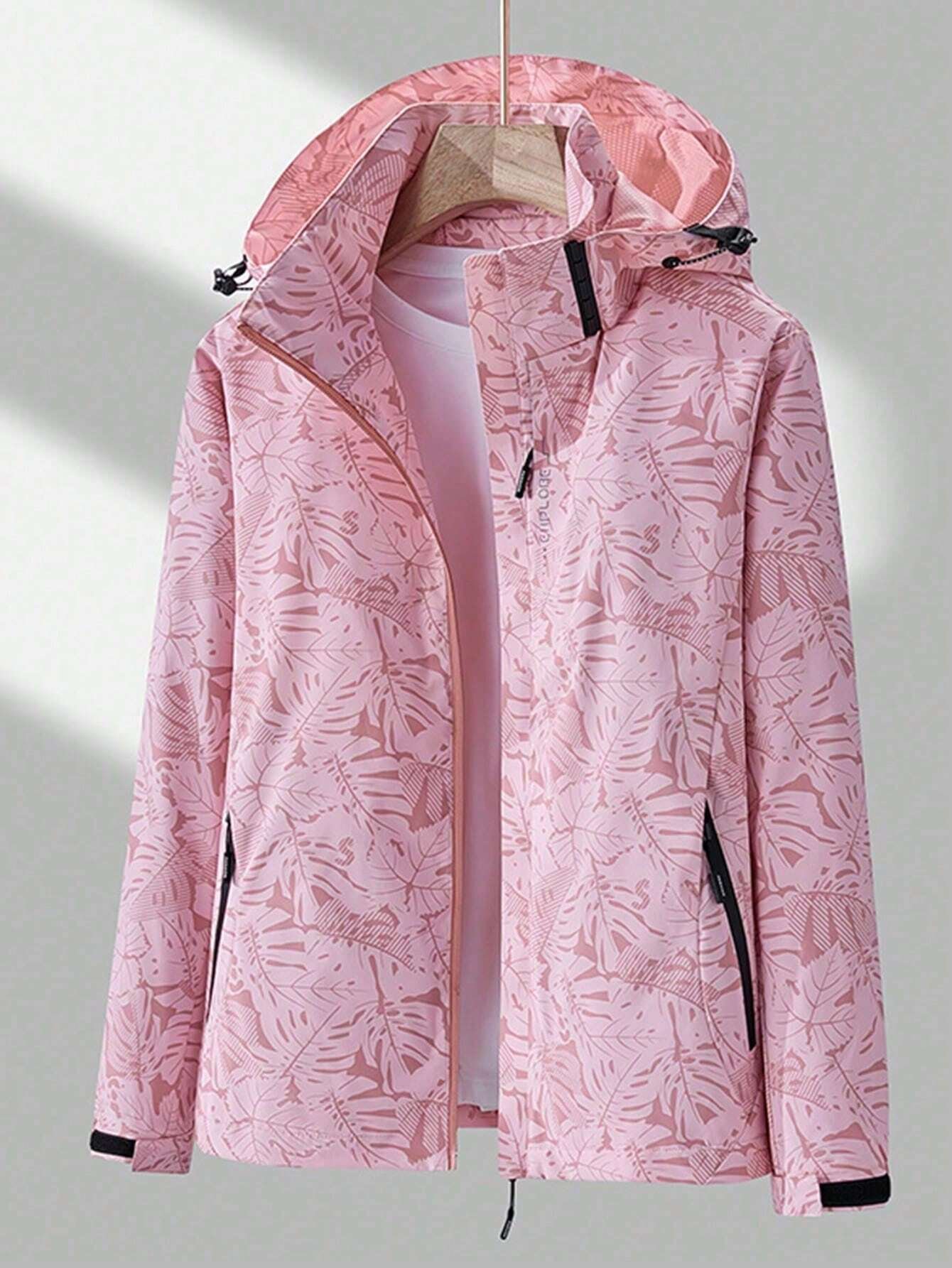 Women's Outdoor Tropical Plant Printed Long Sleeve Sport Jacket, Women's Outdoor Jacket Workout Jacket