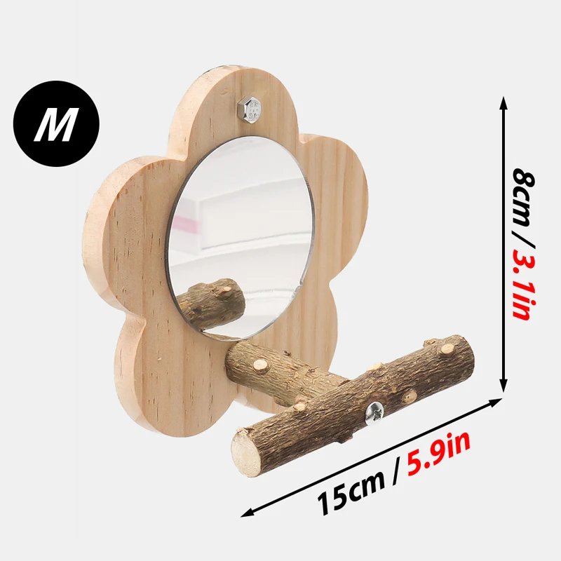 Wooden Bird Perch Natural Wood Bird Perch Stand with Mirror Parrots Platform Cage Accessories Branch Perch Rod Stand
