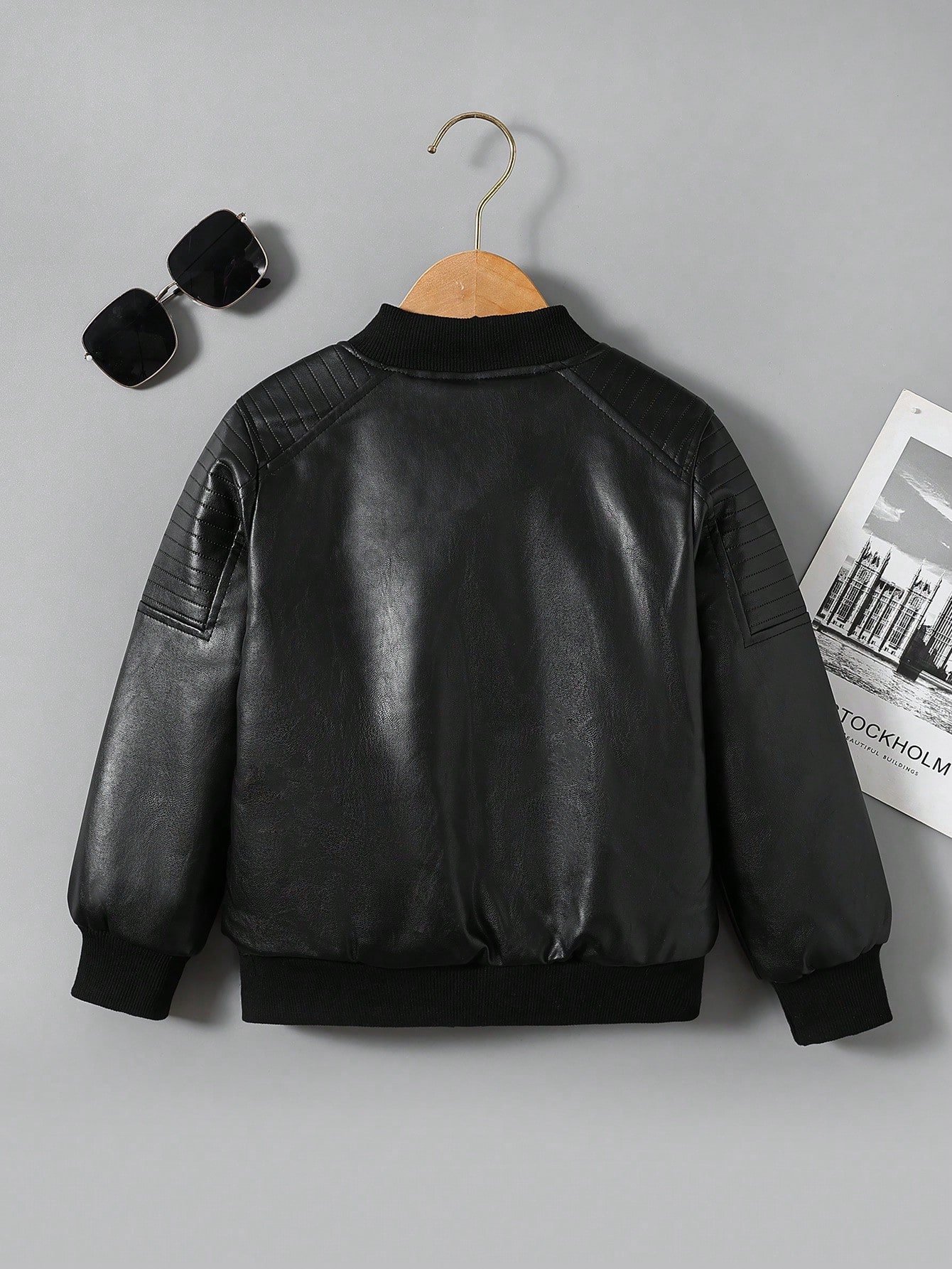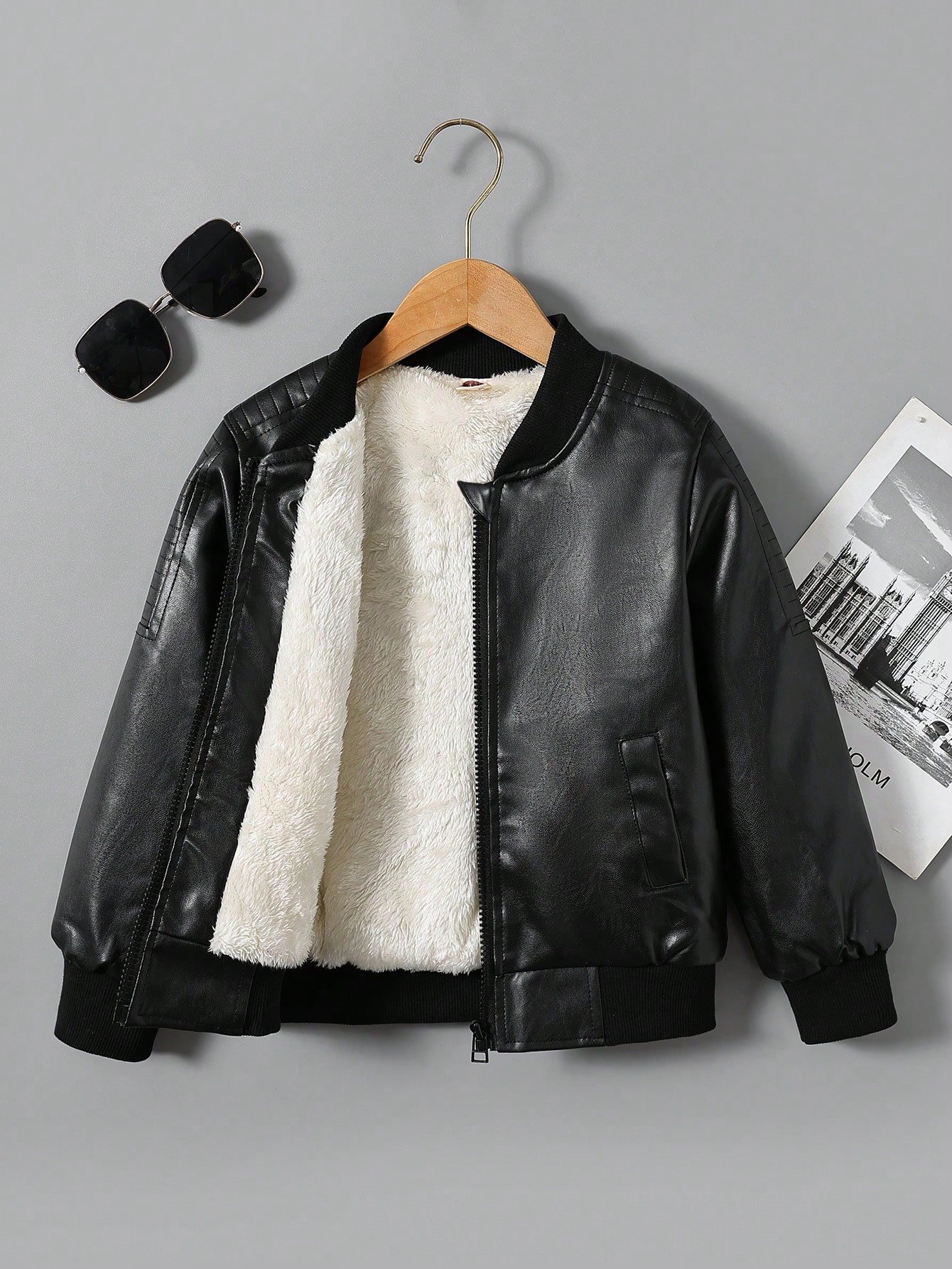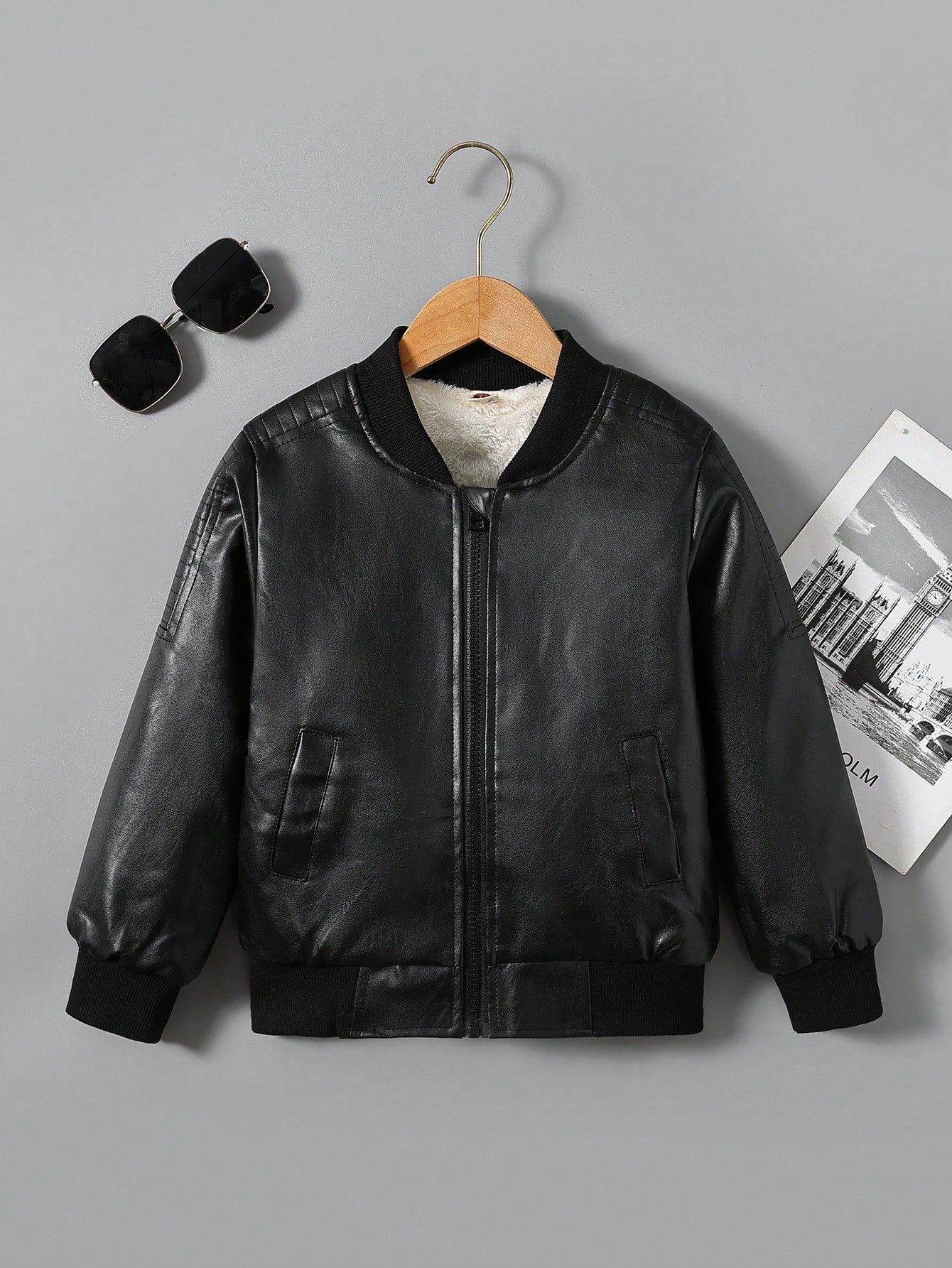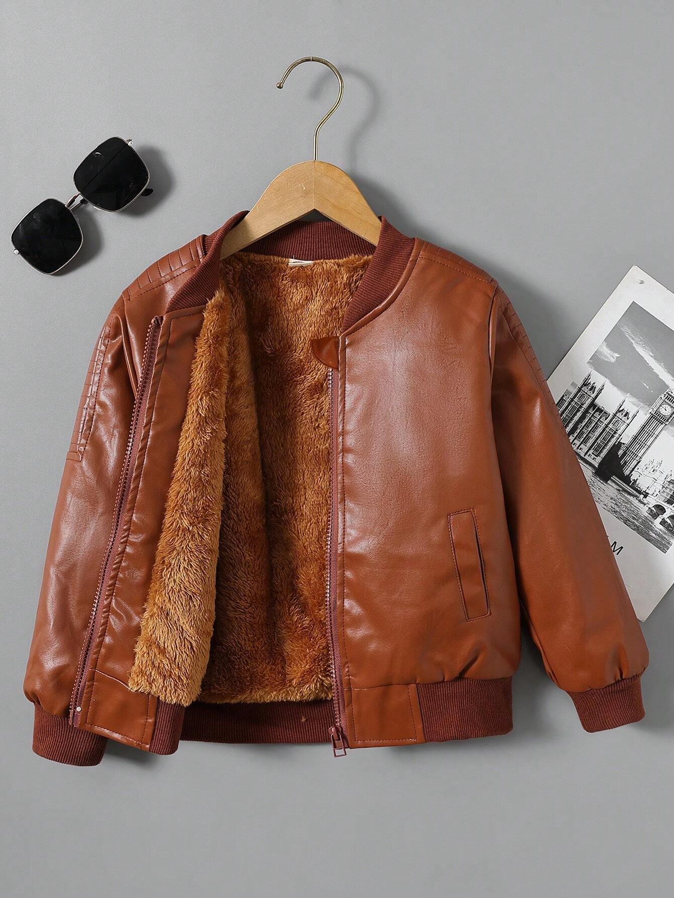 Young Boy Zip Up Teddy Lined PU Bomber Jacket